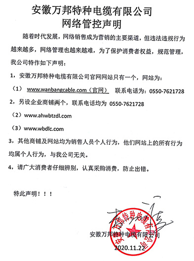 鄭重聲明:安徽萬邦特種電纜有限公司官方網站為:www_wanbangcable_com.saxeeztwrz.cn,除此之外無任何子網站或合作網站,其余均為假冒偽劣。電話:0550-7621728 13485756353 地 址:安徽省天長市滁州高新技術產業開發區經四路29號